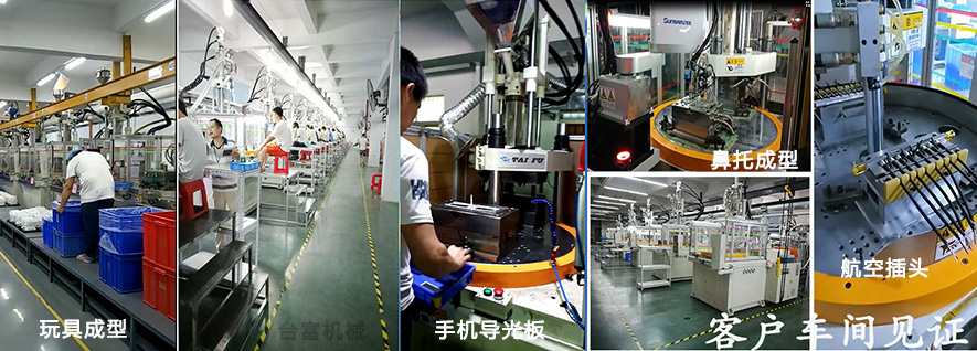 一、轉(zhuǎn)盤式:可多站式設(shè)計(jì),一個(gè)上模,2到8個(gè)下模同步進(jìn)行埋入、注塑包膠、取件,節(jié)省時(shí)間提率;