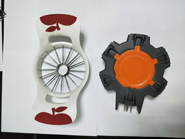 1、上模板配置二個(gè)上模具,圓盤上配置二個(gè)下模具,成型時(shí)圓盤做180度正反轉(zhuǎn)交替。即可完成雙色(雙物料)的射出成型(或包覆成型)。